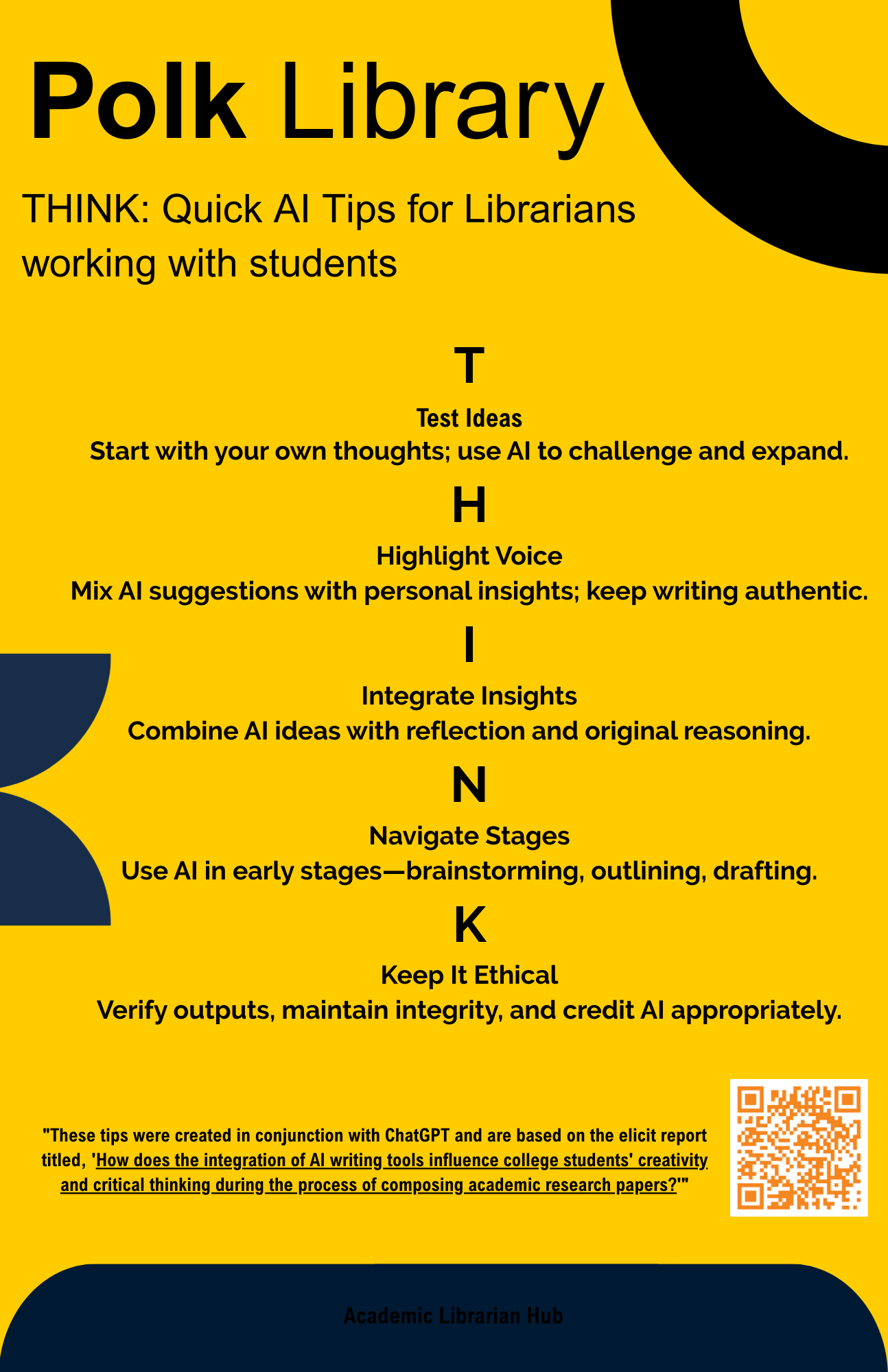 - To share Polk Library’s position on the appropriate use of artificial intelligence tools in academic research and writing.